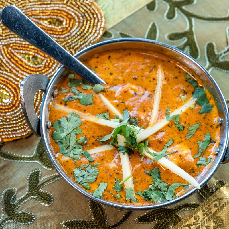 Boneless chicken roasted in tandoor and cooked with creamy sauce, tomato, and spices.