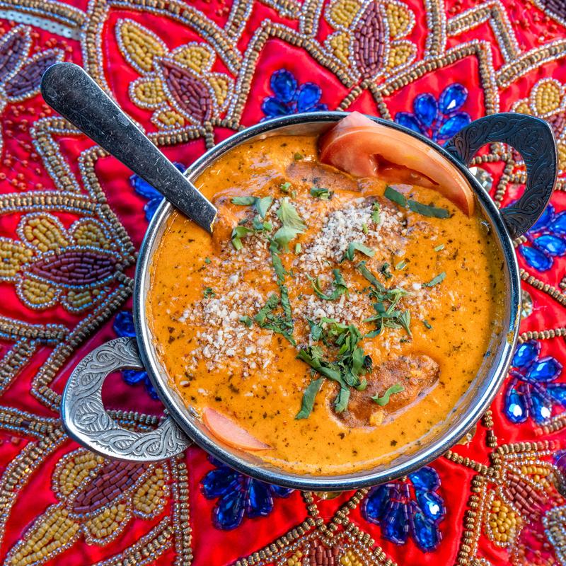 Boneless chicken roasted in a tandoor and cooked with creamy sauce, tomato, and spices.